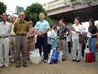 説明: 第1回集会からの参加者の皆さんは、自宅で作った米のとぎ汁EM発酵液を持参しての参加です。また、今回はじめて参加する方々も、今日はどんなことをするんだろうと、熱心に耳を傾けています。