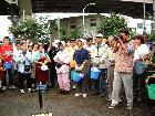 第1回集会に参加した皆さん。EM団子作りは、実は手もすべすべになると聞いて、「あら、本当?」と手袋をはずして、EM団子の説明を熱心に聞いています。