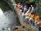 皆さん、いよいよEM団子をがけ川に投げます。