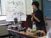 粘土みたいで楽しい作業に暴走はつきもの。バナナやトンボ、犬など、せっけんとしてつかったらすぐに崩れそうな力作を作る子供&大人が続出(でも誰もそれを止めないのがこの講座のよいところです)。 教室内はハーブ蒸留器から出るハーブの香りに包まれました。 手作業だけにみんなおおはしゃぎでオリジナルせっけん作りを楽しんでいました。