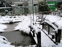 | 《4.今日のAGP》 : 大雪のエコプチもいいですね | | 投稿者 primu_la 投稿日時 2005-3-4 15:25:49 (1517 ヒット) | 昨晩から降り続けた雪は、エコプチを白一色に染めていました。 キウイ棚下の菜の花やビオトープも、育成中の芝生もすべて雪まみれです。 ただ午前中に数人訪れた足跡だけが、くっきりと残っていました。